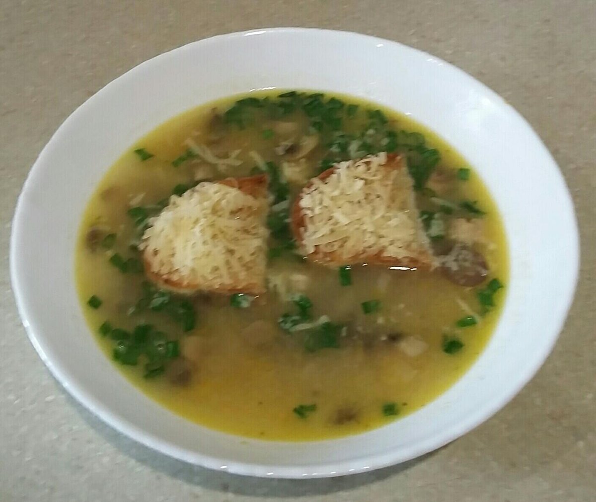 Если вы не любите супы - значит вы просто не нашли свои, которые вам подходят. Или, второй вариант, не ели вкусно приготовленных. И то, и другое, можно исправить. Экспериментируйте и пробуйте разные варианты. А отличные рецепты я предложу вам в этой статье! Луковый суп с шампиньонами, сыром и сухариками Некое подобие французского лукового супа. Всем советую, очень вкусно! На сковородке растапливаем 2 ст. л. масла и выкладываем мелко порезанный лук (2 больших головки). Обжариваем, пока лук не карамелизуется и добавляем 300 г порезанных шампиньонов. Тушим до полуготовности грибов. Всыпаем 3 ст. л. муки, мешаем быстрыми движениями и вливаем 200 мл сливок (20% жирности), перемешиваем. Отдельно отвариваем немного куриного мяса, убираем косточки и в бульон с уже готовым мясом выкладываем содержимое сковородки. Добавляем соль и немного черного перца, доводим до кипения и ждем 1 минуту. Выключаем. Отдельно готовим гренки: ломтики багета разрезаем пополам и подсушиваем в духовке. Суп разливаем