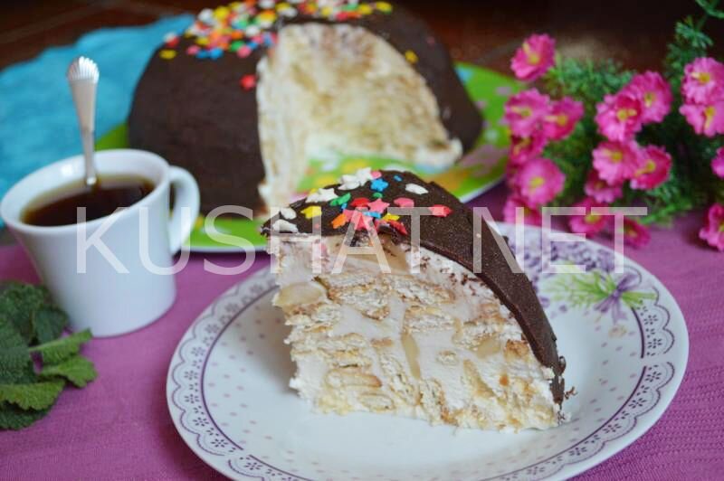 Торт из печенья «Рыбки» со сметаной и бананом. Пошаговый рецепт с фото
