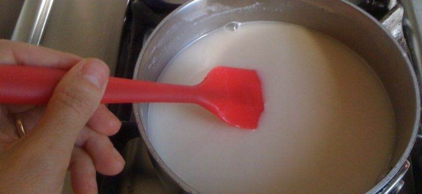 - В жидкость вводят густое вещество на основе муки (тонкой струйкой).