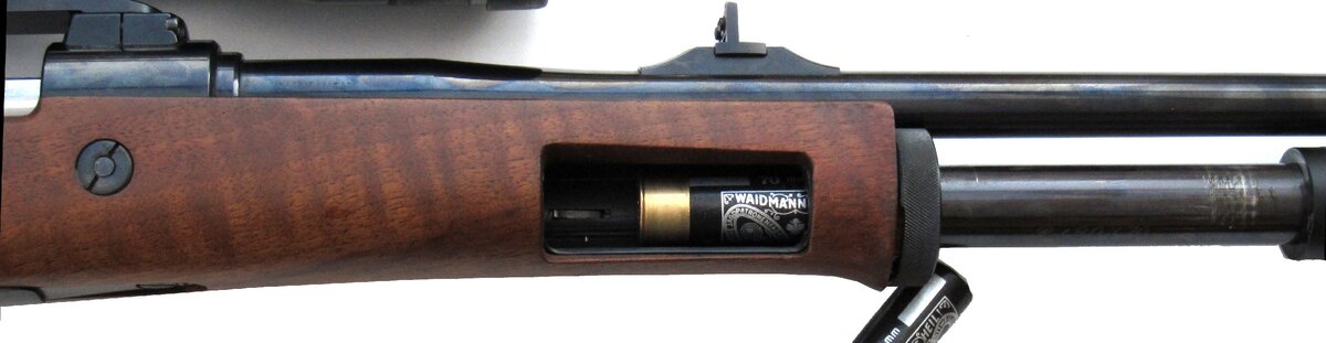 Карабин системы Маузер98 очень надежное оружие, а в калибре 9.3х64 еще и убойное. Но надежности никогда не бывает много, кроме того калибр 9.3х64 очень мощный но и специализированный. А если охотник захочет подстрелить птичку или зайчика? Видимо так думал конструктор оружия выдумывая данный экземпляр,