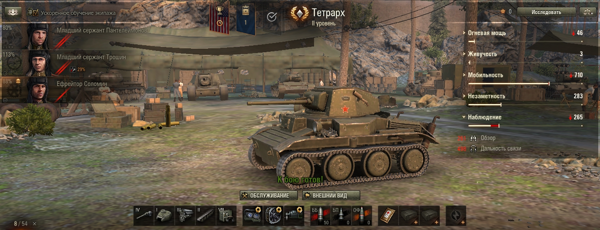 ЦА=целевая аудитория, нежно опекаемая варгеями, подняла вселенский хайп, и Тетрарху обрезали радиус обзора до 250-260 метров. Машина стала сильно потной. Так как уже не могла отыгрывать с дистанции. А в ближнем бою проигрывала в скорострельности и маневренности практически всем оппонентам. Да и тонкая броня, создает особенные неудобства. Любой встреченный "пулемёт" оборачивался потерей большой части ХП, или даже выходом в ангар. В реальности, танк создавался в Великобритании, как машина поддержки десантных подразделений. Десантировался Тетратх посадочным способом, и перевозился по воздуху внутри специализированных самолётов и планеров. Главным особенностью машины был способ поворота машины. Наряду с притормаживанием гусеницы, поворачивались первый и последний катки. А гибкая гусеничная лента при этом, изгибалась вправо-влево как змея. И в идеале, р