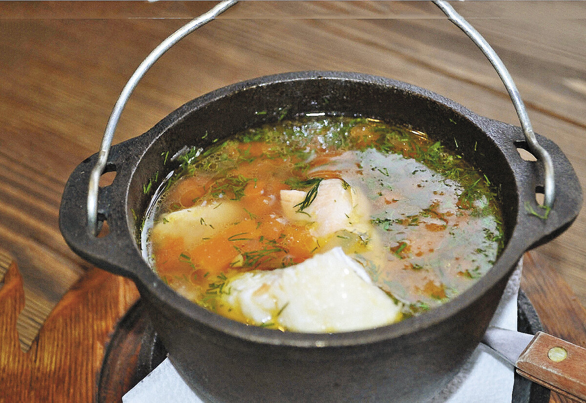 Сегодня я буду говорить как пошагово готовить уху. Первый шаг Первым делом нужно почистить рыбу - у меня этим процессом всегда занимается муж, поэтому рыбка уже готовая. Карп у меня был целый, а от сома - хребет, хвост и голова, которые остались от другого блюда. Карпа и сома можно заменить любой речной рыбой - окунем, карасем, щукой или любой другой - той, какая вам сегодня попалась на удочку) Ну, а если она была "выловлена" не в водоеме, а в магазине, то обязательно обращаем внимание на ее свежесть Второй шаг: Головы, хребты и хвосты выкладываем в кастрюлю и заливаем 2 литрами чистой воды. Воду для этого блюда лучше брать родниковую, ведь вода в этом блюде играет немаловажную роль - все-таки для рыбки это родная среда обитания! Ставим на огонь и варим 20-25 минут от закипания. Если мы готовим уху на природе - вместо кастрюли возьмем, конечно же, казан Третий шаг: Тем временем почистим овощи - лук, морковь, чесночок, моем зелень, готовим специи шаг 4: Для ухи идеальным будет бо