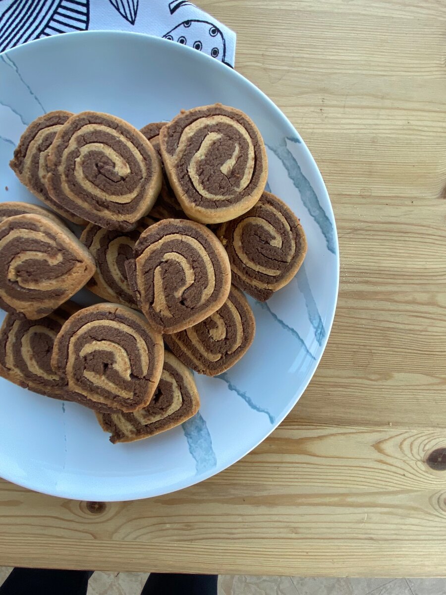 Тесто на печеньки 1. Сначала смешиваем муку, разрыхлитель и соль. Далее необходимо это все просеять, не пренебрегайте такими вещами. Это влияет на текстуру. 2. Масло режем небольшими, желательно одинакового размера, кусочками и взбиваем с сахаром. Предварительно я сахар измельчаю в блендере до состояния пудры. Так он быстрее растворится в тесте и на готовых печеньках не будет видно кристалликов. Печенье становится нежнее. 3. Во взбитую массу добавляем яйцо и ванильный экстракт (его можно заменить семенами ванили, если у вас есть стручок, или же ванильным сахаром). Хорошо перемешиваем до однородности. 4. Затем начинаем добавлять муку. Должен получиться комочек теста, который необходимо поделить на две части. 5. Шоколад необходимо растопить на водяной бане или в микроволновке, как больше нравится, и немного остудить. Добавляем его и како в одну из частей теста. Убираем оба комочка в холодильник на 1-2 часа, чтобы тесто застыло. 6. Раскатайте тесто между двумя листами пергамента.