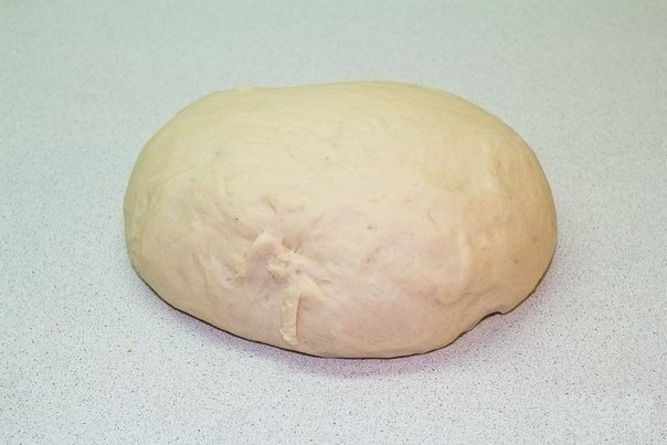 1. Для начала начнем традиционно с теста. Для этого замесим дрожжевую опару, ведь тесто у нас на сухих дрожжах. Всыпьте дрожжи в теплую кипяченую воду, добавьте соль,сахар и оставьте на 15 минут. 2. Вольем полученную опару в заранее просеянную муку: 3. Перемешаем тщательно, но муки много добавлять не стоит, оставьте на 10 минут полученную массу настояться 4. Затем присыпим рабочую поверхность мукой и выложим тесто. Постоянно подсыпая муку замешиваем его в шарик чтобы он стал мягким. 5. Раскатайте тесто в пласт по диаметру своего противня толщиной не более 4 мм. 6. Смазываем основу томатным соусом. Можно использовать вместо готового соуса спелые помидоры. Натрите на крупной терке очистив от кожуры и на сковороде протушите до испарения влаги. Но если времени на готовку мало, то обычный соус выручит, как в моем случае: 7. Добавьте колбасу для сытности блюда, нарежьте ее соломкой или кубиками: 8. Теперь выложим грибочки нарезанные тонкими пластинками, а по центру помидоры