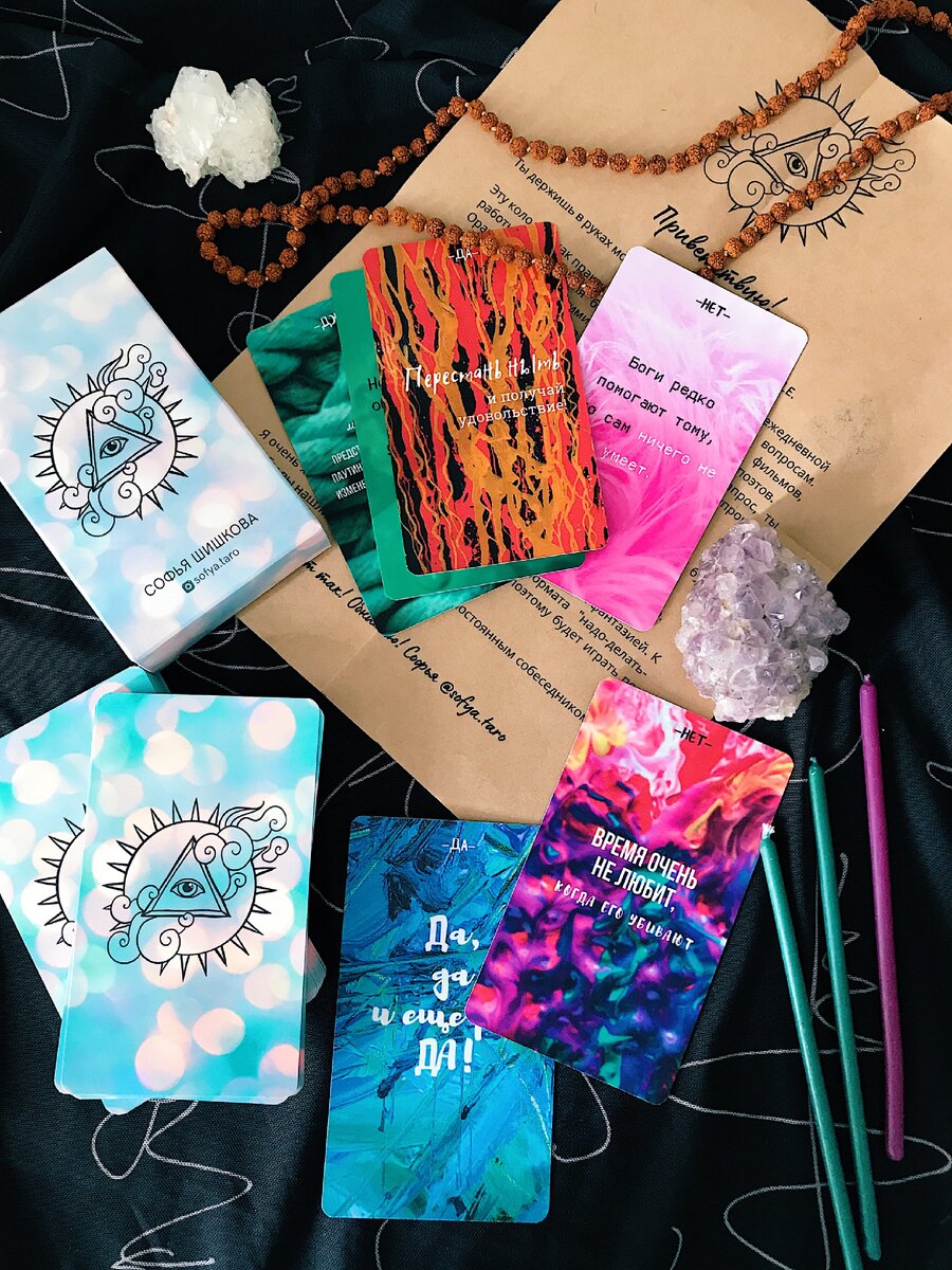 Пополнение моей небольшой коллекции колод 🕊 MEDIA ORACLE от @sofya.taro 💫 ⠀ Такой простой, но в то же время точный оракул. Когда я увидела его, поняла, что именно его мне как раз не хватало! ⠀ Оракул построен на принципе Да/Нет, а также даёт подсказки Вселенной, советы. Можно использовать как совет дня, либо при наличии конкретного вопроса. ⠀ Он создан не только для тарологов и эзотериков, но послужит помощником любому человеку особенно в наше непростое время! ⠀ На каждой карте написано послание - это цитаты из фильмов, мультфильмов, часть из которых вы можете даже знать. Именно поэтому он и Media 📽 ⠀ Как он работает? По тому же принципу, что таро, руны, любая другая мантическая система. Вам выпадает именно та карта, которая даёт наиболее точную характеристику. Всей этой системе даже есть объяснение в психологии, и психологи работают с метафорическими картами в своей практике, так что все это вполне даже научно! ☝🏻 ⠀ А я влюбилась в эти яркие красочные карты и не менее интересные