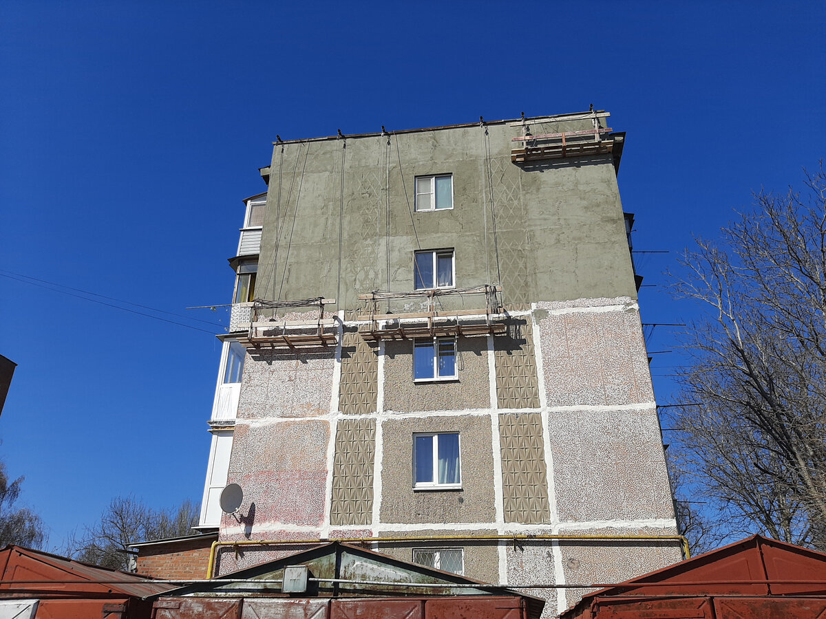 Но прямо сейчас, напротив моих окон, подвергался надругательству, а на бумаге ремонту фасада, подрядчиком фонда капитального ремонта, 30- летний панельный МКД(под УК).