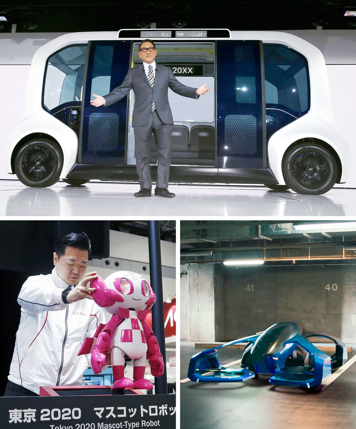 - Летающий автомобиль SkyDrive. С его помощью будет зажжен олимпийский огонь. Компания Toyota уже на протяжении нескольких лет занимается разработкой прототипа летающего авто. Планируется, что он будет похож на квадрокоптер с 4 вентиляторами и 3 колесами. Скорость в полете — 100 км/ч, на дороге — 150 км/ч.