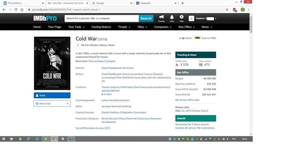 А в Европе запустить проект с производственным бюджетом более 7 млн. евро уже проблема. Даже лауреаты Канн из Восточной Европы продолжают снимать на 2 млн. евро. Но в России я регулярно сталкиваюсь с людьми, которые на полном серьёзе говорят о производственном бюджете их проектов ОТ 5 млн. евро. Даже не знаю, как им объяснить суть, чтобы не разочаровать. Например, производственный бюджет "Холодной войны" Павликовски, И