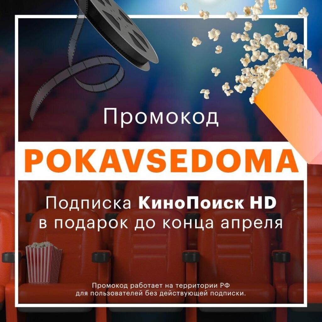 📃1. Заходим на сайт КиноПоиска и вводим промокод POKAVSEDOMA 2. Перед окончанием действия промокода переходим на страницу с вашими подписками и отменяем продление подписки ❕ Актуально для новорегов. Поэтому если у вас старый аккаунт - просто регистрируйте новый