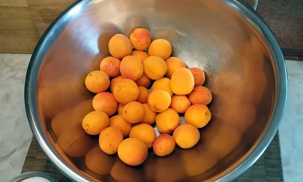 Абрикосы плоскоокруглые, по 25 г, сплошь покрыты красным румянцем. Мякоть красно-оранжевая, суховатая.
