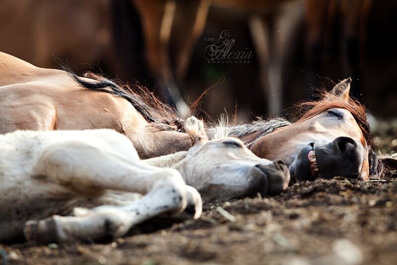 Состояние глубокого сна можно наблюдать у маленьких жеребят, которые беззаботно спят в любое время дня и ночи. Взрослые животные могут спать глубоким сном в присутствии людей только тогда, когда доверяют определенному человеку как члену своего табуна.