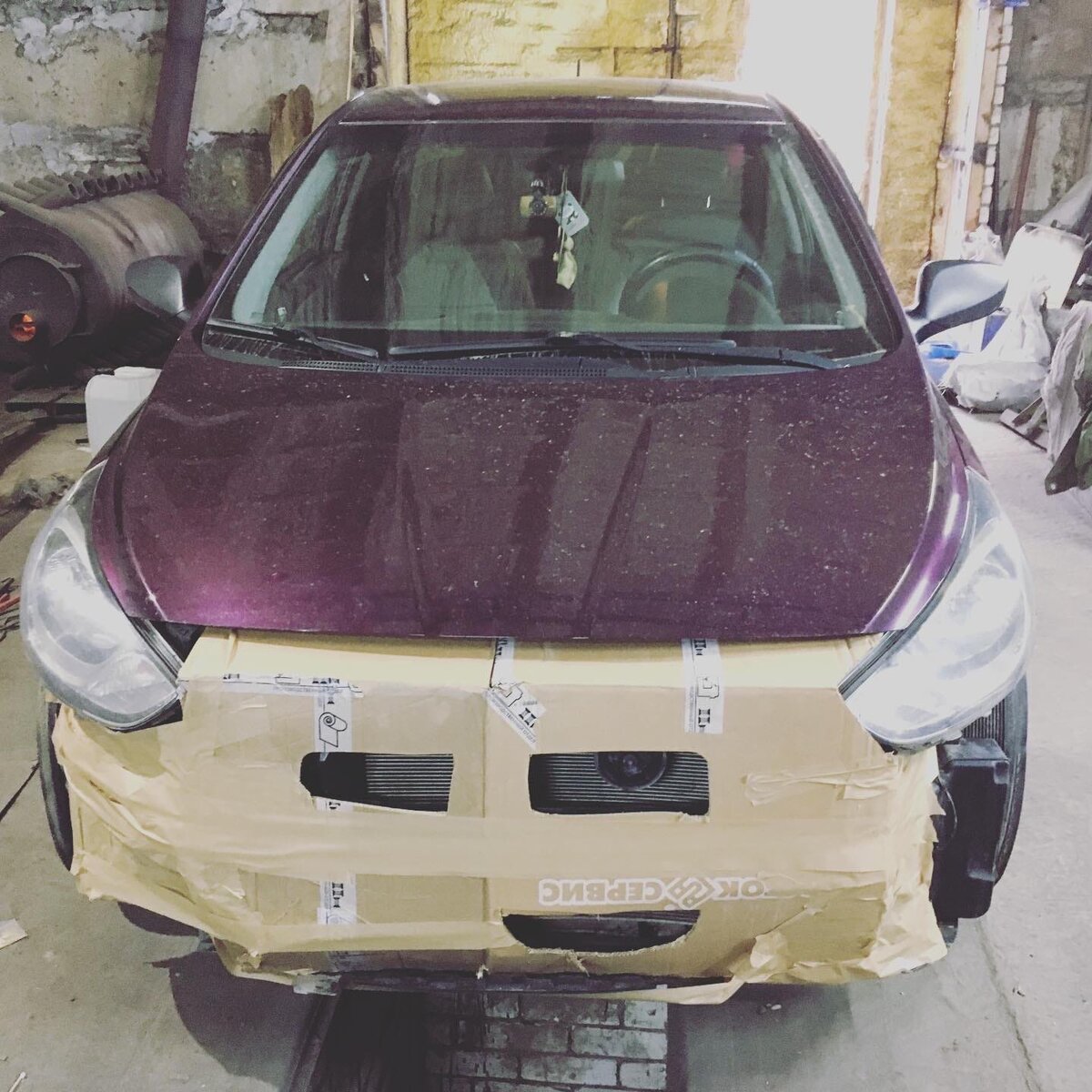 Всем привет, Любители колес! На улице Апрель 2020 год, карантин, почти все предприятия закрыты. И у людей заканчиваются деньги( Такая же участь постигла и моего друга, да еще у него напасть приключилась. Снесли на его Солярисе бампер, а ездить на машине приходится каждый день. И чтоб хоть как то придать вид машине, и защитить агрегаты от грязи и пыли которые стоят за бампером, он решил проявить смекалку, и подручные материалы))) У соседнего магазина, в битве с бомжами, он отвоевал огромную картонную коробку, и пару десятков пустых бутылок. Коробка пошла как основной материал для бампера, а вот бутылки пришлось сдать и на вырученные деньги купить строительный скотч. В начальных классах он очень любил клеить поделки и читал очень много книжек по а ригами, и вот спустя 25 лет эти навыки ему пригодились. Вооружившись ножницами он начал творить чудеса. Распоров коробку, и нарисовав на нее контур машины он начал вырезать картон. Руки сопротивлялись, но мастерство взяло вверх и получилс