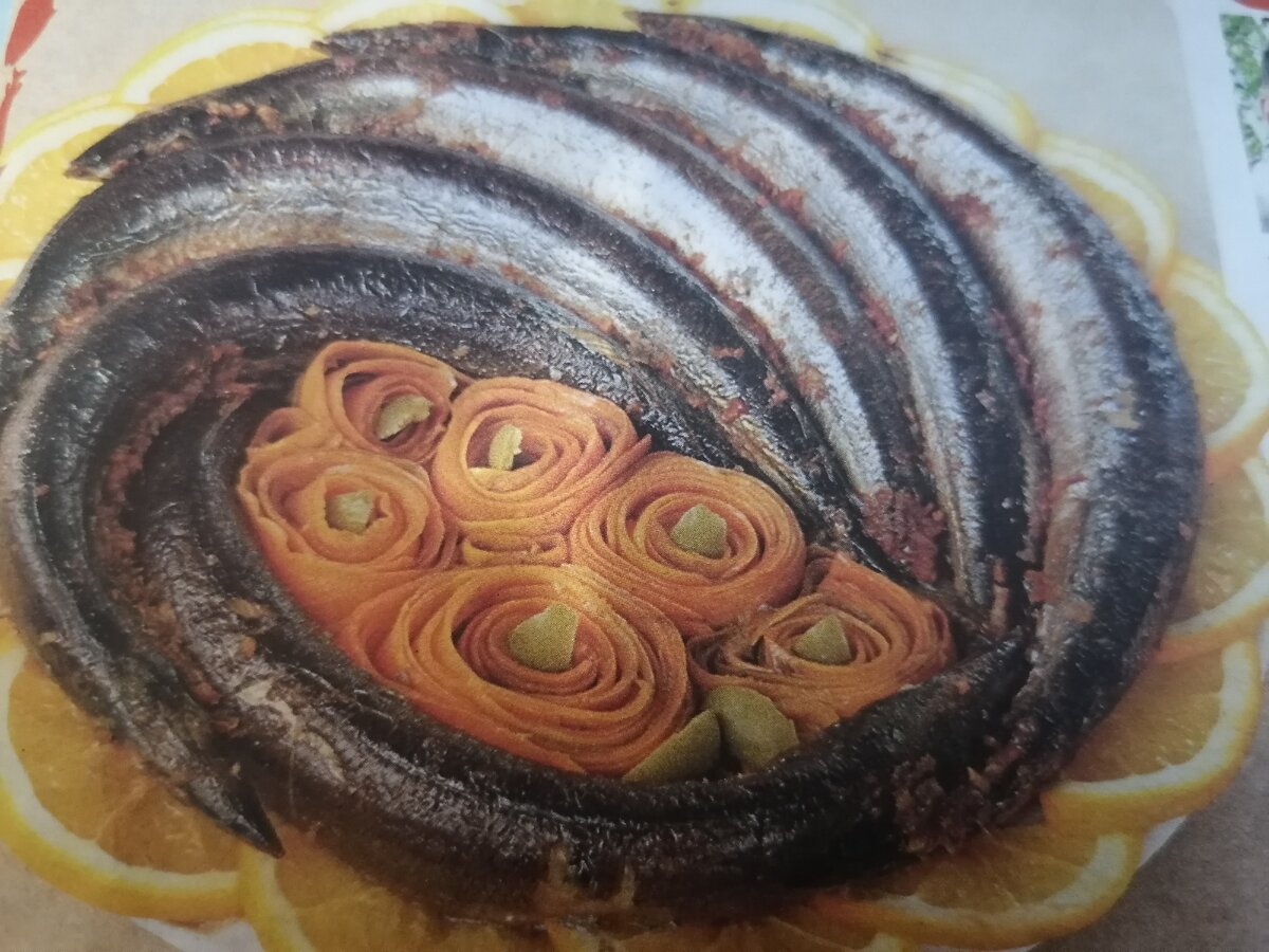 - Морковь нарежьте соломкой и вместе с рыбой в жаропрочную форму, поверх залейте соусом, накройте фарму крышкой или фольгой и готовьте 40 минут в нагретой до 180 градусов духовке.