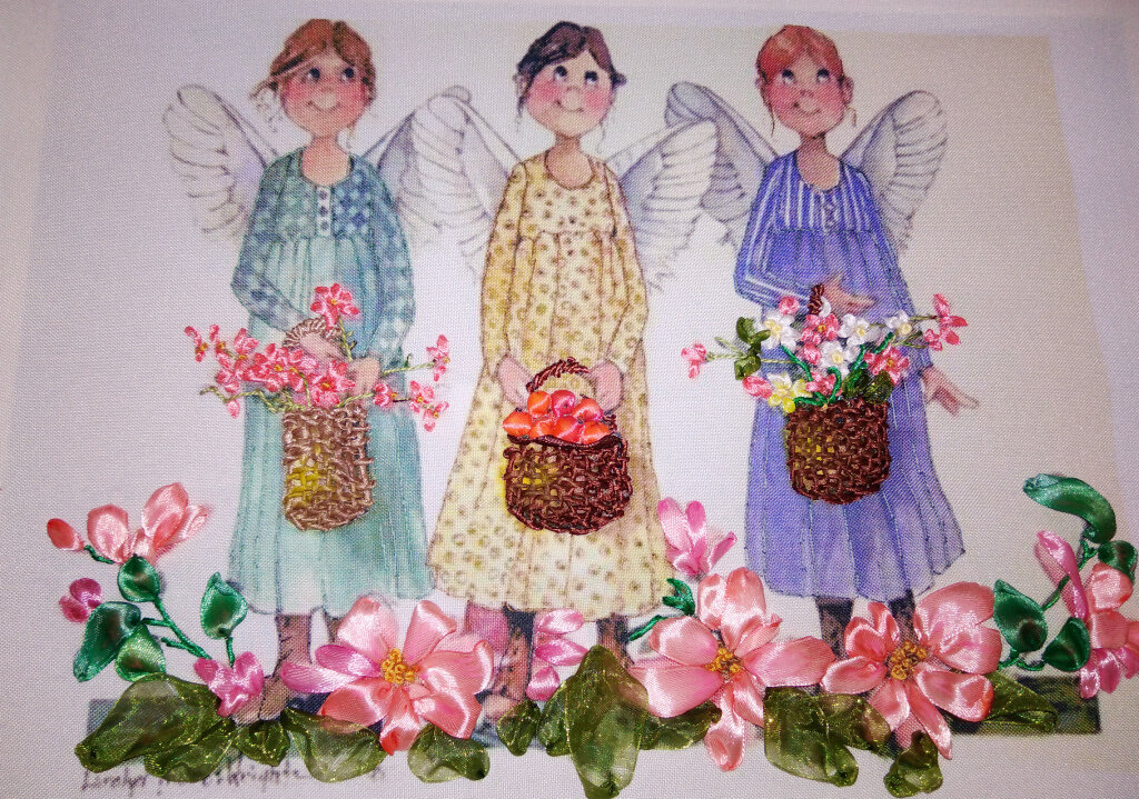 Здравствуйте, дорогие гости моего канала! Мы переживаем сейчас трудные времена. Вместе со всей страной. Со всем миром. Обычное приветствие «Здравствуйте!» приобретает особый смысл. Мы молимся, чтобы невзгоды и напасти миновали наших родных и близких, вспоминаем наших ангелов-хранителей. Захотелось вышить ангелочков. Берегла эти принты для внучек к Международному дню защиты детей. Но их время наступило раньше. На первом – три юных, симпатичных, радостных создания. В руках – корзинки с летними дарами: цветами, спелыми яблоками. Трапунто придает объем плетеным корзинкам, синтепон внутри ленты – яблочкам. Под ногами – цветущая полянка. Такая простая и очень милая картинка получилась. На втором принте надпись: «Я просто счастливая девочка». И маленькая очаровашка в скромном платьице в горошек. Такая непосредственная! На голове – венок из роз. Это первые розы, которые я тут же училась вышивать, просматривая мастер-классы на ЮТубе. Такая незатейливая картинка, а сколько в ней нежности
