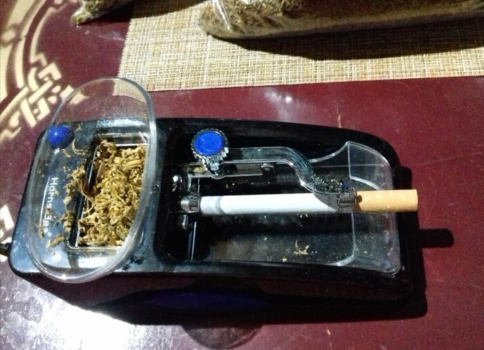 Всем здравствуйте! Сразу скажу всем, кто бросил курить и радуется жизни и новым ощущениям - вы реально молодцы, ребята, и я вам завидую белой завистью. Но я курю, как и многие на Пикабу и бросать не планирую - нравится мне это дело (Хотя пить бросил 2 месяца назад - закодировался, если кому интересно могу пост запилить отдельный про ощущения и т.п.) И эта привычка довольно серьёзно бьёт по карману среднестатистического курильщика. Ничего нового я не открою, просто поделюсь своим опытом и ощущениями. Где-то с год назад придарили мне вот такую машинку. Стоит она рублей 300 на али-экспресс. И пачку сигаретных гильз (100 руб. – 200 шт.) Ну зашибись, подумал я, сейчас куплю табак и буду курить настоящий табак. Заехал в табачный ларёк и купил на пробу пару пакетиков табака. Попробовал – отлично но дорого 30 гр – 350 рублей. Это 30 сигарет. Да, хороших, настоящих сигарет но, блин дороговато для моего кармана. В день я скуриваю 1,5-2 пачки сигарет и год назад сигареты, которые я курю стоили
