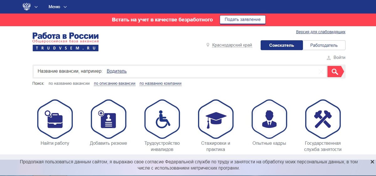 Мы попытались стать на учет чрез Интерактивный портал службы труда и занятости населения. Не знаю причину, но сайт этот постоянно слетал, да конечно он подтягивал данные через Госуслуги. Честно говоря взбесило меня третье заполнение формы. Когда он очередной раз слетел я стал искать другие способы встать на учет дистанционно. И о чудо