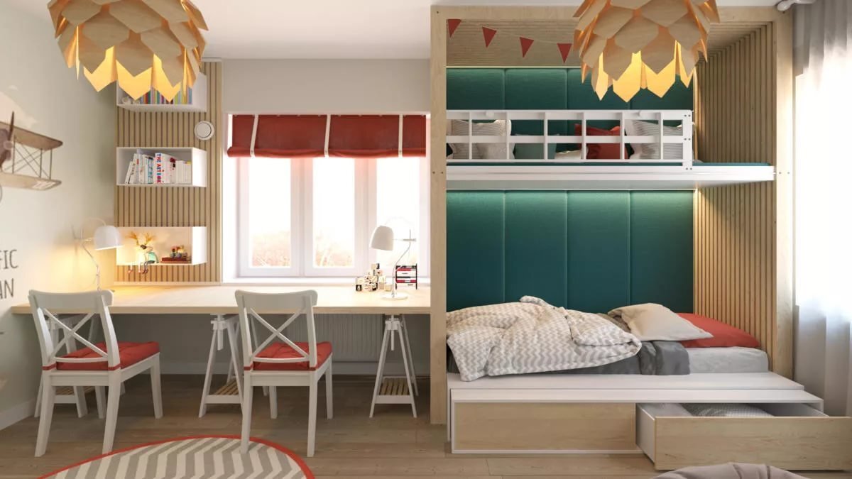 Детская в скандинавском стиле очень практична, ведь она может расти вместе с ребёнком! Главное – правильно сделать основу. А потом можно менять декор, мебель, игрушки в зависимости от возраста и интересов ребёнка. А ещё можно легко сделать интерьер для разнополых детей. Материалы Лучше отдать предпочтение натуральным материалам. Для пола выбирают доску, паркет или массив. Доску можно окрасить в белый цвет. А если хотите более бюджетное покрытие, то можно выбрать ламинат. Для стен можно выбрать обои. Присмотритесь к бумажным обоям – они одни из самых экологичных. Но минус бумажных обоев – их нельзя мыть. Если для Вас важно их мыть, то можно покрасить стены краской. А с помощью трафаретов можно нанести на стены рисунки. На стену в детскую можно приклеить грифельные покрытия, на которых ребёнок сможет рисовать мелками! Это даст ребёнку пространство для творчества. Цвета Цвета в детской могут быть как светлыми, так и тёмными. Декор может быть ярким или пастельным. Мебель Кровать Главное