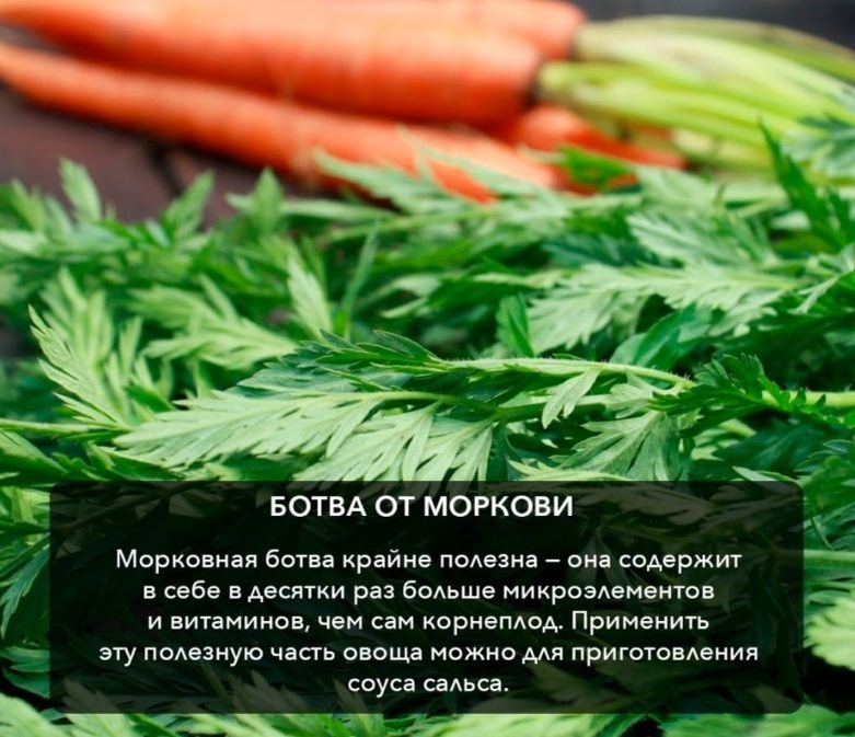 Источник: https://sadgrad.ru/leisure/health/botva-morkovi-stoit-li-vybrasyvat-takoj-poleznyj-produkt/