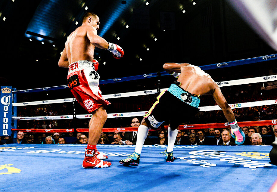 Как нокаутер из России уничтожил легенду бокса. Именитый чемпион едва держался на ногах Выиграв титул WBO и трижды его защитив, нокаутер из России Сергей Ковалев всерьез задумался об объединении поясов. На тот момент самым престижным званием чемпиона мира по версии WBC владел Адонис Стивенсон, который никак не хотел соглашаться на бой с Ковалевым. Поэтому Сергею пришлось взглянуть в другую сторону, где его уже поджидал очень опасный противник. Речь идет о самом Бернарде Хопкинсе, настоящей легенде мирового бокса. Он владел чемпионскими поясами в пяти весовых категориях, на протяжении 20 лет оставаясь в рядах лучших боксеров планеты. Да, Хопкинс был уже в очень солидном возрасте - ему было аж 49 лет. Но не стоит нивно полагать, что годы были ему помехой. Бернард завоевал два чемпионских пояса - WBA и IBF, после чего открыто объявил о своем желании встретиться с Ковалевым. Ветеран прекрасно понимал, что "Крашером" (в переводе "Разрушитель") Ковалева прозвали неспроста, но по-настоящему