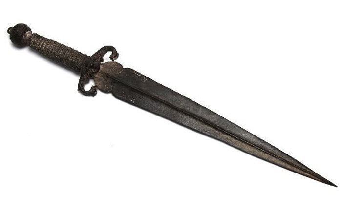 4. Мизерикорд («Клинок милосердия») В 14 столетии среди французских рыцарей популярным стал клинок «мизерикорд» - длинный тонкий кинжал, который легко проходил между пластинками доспехов. Он был практически бесполезен в бою, не был оснащен даже специальной защитой на рукоятке. Его использовали для добивания противника. Название кинжала происходит от латинских слов «акт милосердия». Когда рыцаря сбивали с лошади, а он был серьезно ранен, то чтобы облегчить страдания, его добивали таким кинжалом. Многие использовали кинжал для устрашение раненого рыцаря, чтобы склонить его к сдаче в плен или потребовать выкуп.