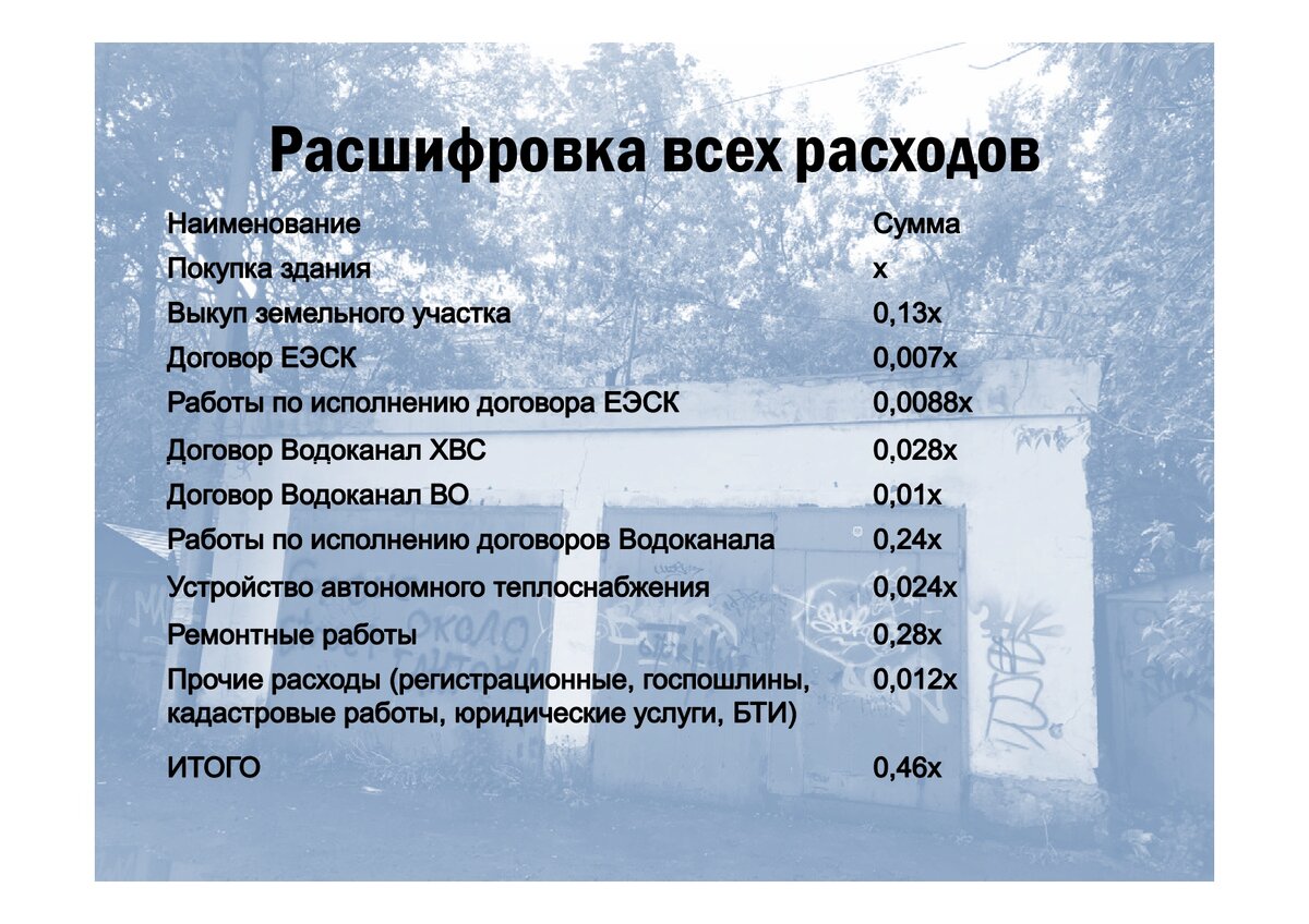 После того как забрал договор купли продажи из МФЦ, я перешел к постановке задач: Как и у большинства, сначала у меня был план, и стратегия тоже была. Составил дефектные ведомости, сметы, взял тарифы на подключение ресурсоснабжающих организаций с официальных источников. Составил я план инвестиционных оплат и работ. Следующим этапом я определил целесообразность вложений, а именно расчеты показателей окупаемости. Просчитал метод 1 Аренда, метод 2 рыночная стоимость объекта недвижимости. Реалистичное составление этого плана - это очень важный и ответственный этап, который может повлиять на то будет реализован проект в задуманном виде и в поставленные сроки или нет, будет запущен объект как бизнес или повиснет балластом, который несет только расходы. После того как я закончил расчеты передо мной стояла, как я думал самая простая задача, просто сделать ремонт без излишеств, качественно, не дорого и быстро. Для того чтобы произвести работы по капитальному ремонту мне нужен был подр