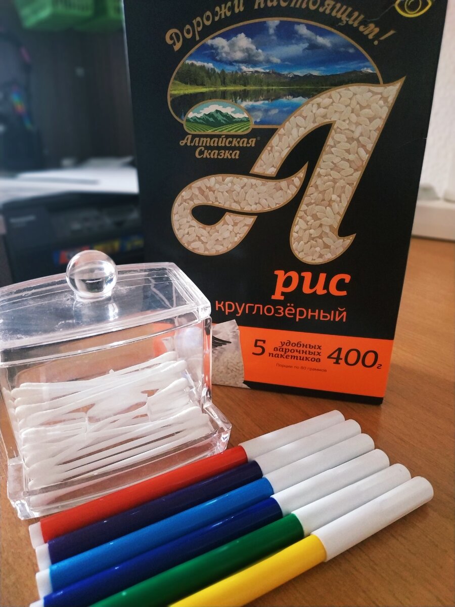 Не тратьте деньги на дорогие игрушки! 5 минут , минимум затрат и развивающая игрушка готова! Нам понадобятся: пустая коробка из-под крупы или любая другая, ватные палочки, цветные фломастеры, ножницы, лист бумаги, клей и ваша фантазия! У меня не было цветного принтера, поэтому я нарисовала :) малышу понравилось ! Если вы счастливые обладатели цветного принтера, то вам очень повезло! С ним открывается море возможностей для создания цветных развивающих игр! Ну а у кого его нет, будут развивать свои творческие таланты, как и я! Прикрепляю картинку для тех, у кого есть принтер: