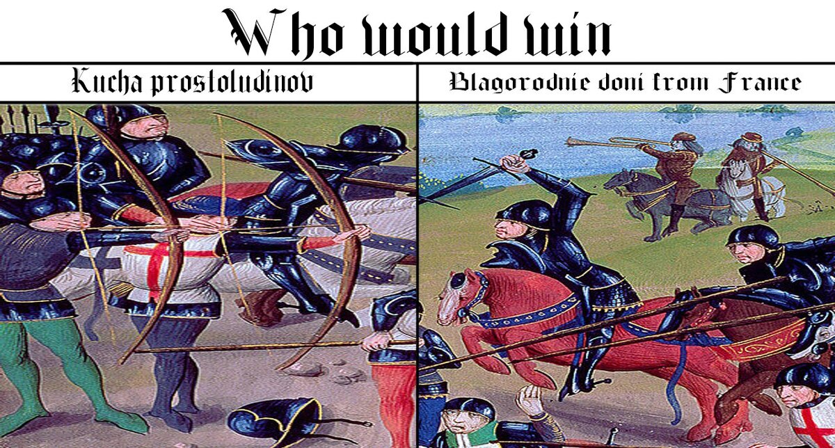 Про битву при Азенкуре, или сказ о том, что рыцари уже не те. Уже более чем полвека шла столетняя война. Французы уверенно теряли свои позиции, а англичанка всё больше и больше гадила. Догадились в итоге до того, что английские войска пришли в весьма посредственное состояние посредством множества болезней. Английский король Генрих V в связи с этим собрался было отступать, но идущие по его следам багетчики грозили нарезать отступающую английскую армию в Рататуй. Поэтому у Азенкура, что вблизи Кале, было решено дать сражение французским войскам. Противоборствующие армии наткнулись друг на друга 24 октября, но дождик оттянул сражение на следующий день. Англичане, практически не имевшие тяжёлой кавалерии, уставшие и измученные, каялись перед этим во всех грехах и адово молились, так как победа была призрачной. Ранним утром 25 октября, без объявления сражения, вся (нет) французская тяжёлая кавалерия начала наступление на английские позиции. Большая часть рыцарей тупила, да и земля, пр