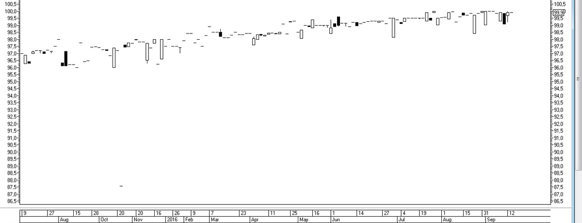 Рис. 5. График фьючерса на акции Сбербанка с исполнением в декабре 2016 г. и марте 2017 г.