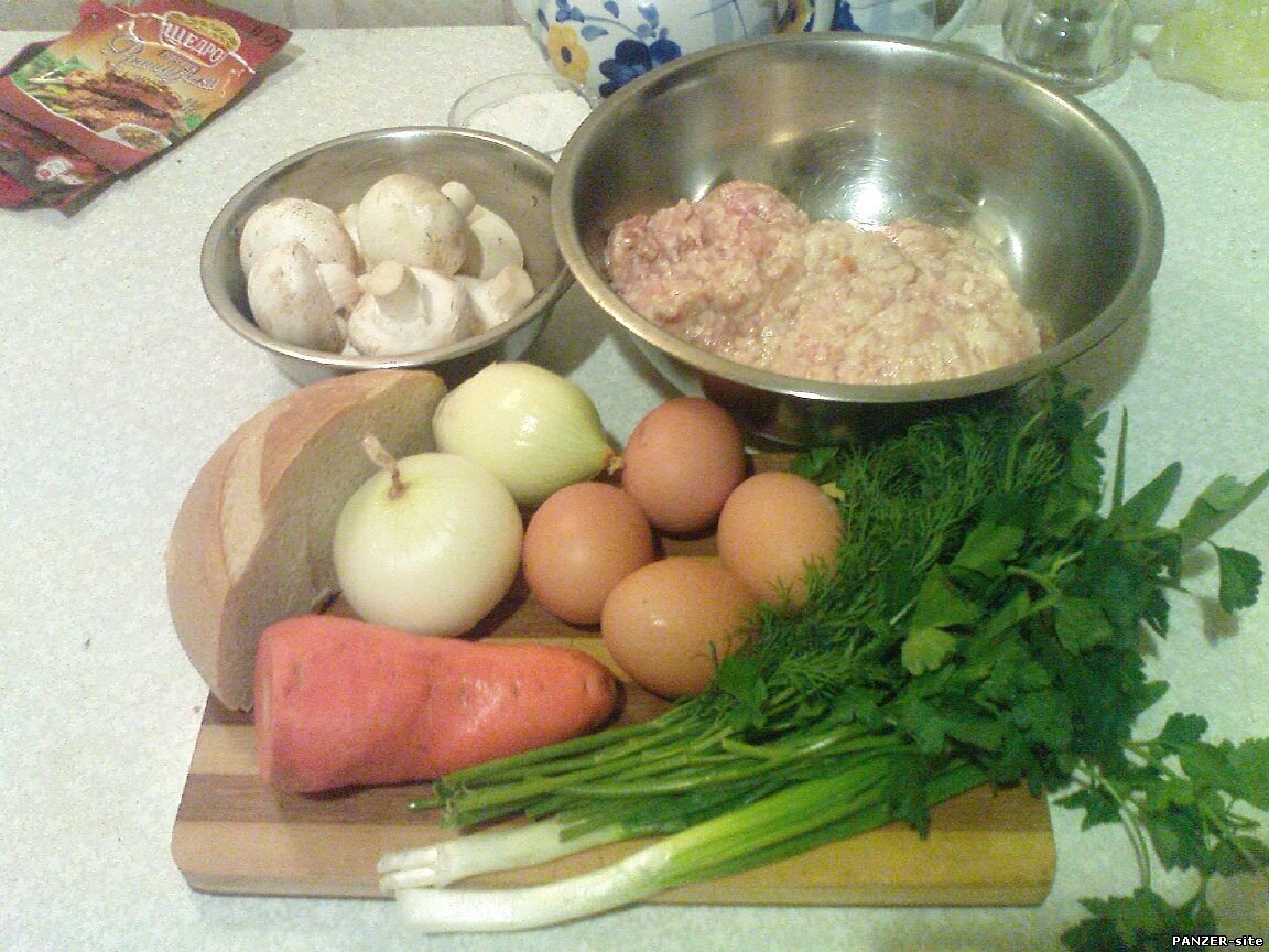 Фарш (у меня куриный, по бедности, а так, лучше, конечно, свино-говяжий использовать) – 0,5 кг.