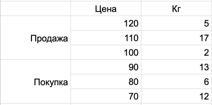 3 покупатель хочет купить 12 кг помидор по 70 рублей за кг. Сформировалась такая ситуация: Рыночная цена помидор: 100 рублей за 1 кг. В итоге, они все стоят и смотрят друг на друга и сделки не совершаются. Это называется стакан заявок. Далее события могут развиваться по разному. Развитие ситуации номер 1. Приходят покупатели Приходит дополнительный покупатель и его устраивает цена 100 рублей. Он х