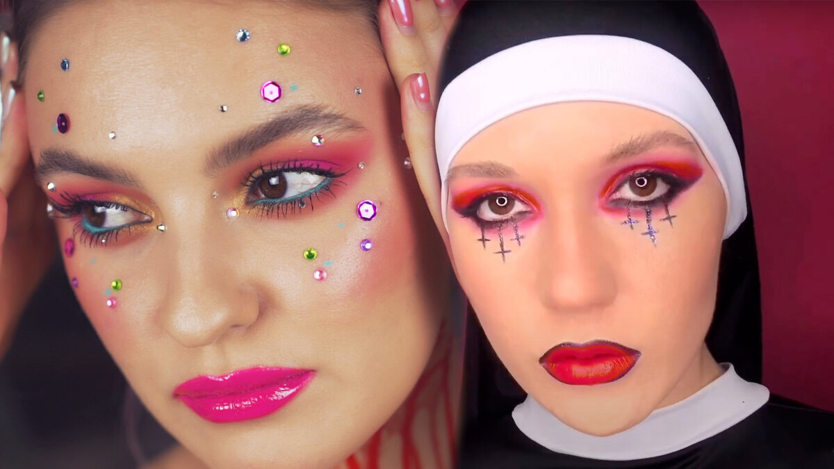 Привет! Спасибо, что зашли на мой Дзен канал, меня зовут Карина. Сегодня мы вместе с моей подругой Наташей будем перевоплощаться в героев фильмов и сериалов. Я выбрала образ монашки из сериала "Эйфория", а Наташа - главную героиню фильма "Неоновый демон". Образ, который я буду повторять 1. Тон В качество тона буду использовать 3 средства - тональный крем-сыворотка BOURJOIS healthy mix serum, тональный крем GIORGIO ARMANI power fabric и жидкий хайлайтер ESSENCE insta perfect в оттенке 20. Смешиваю матовый тон Armani и тональный с легким покрытием от Bourjois, чтобы получить идеальную "золотую середину" и текстуру, с которой легко работать, а жидкий хайлайтер от Essence придаст лицу сияния и легкий эффект загара. 2. Консилер Для перекрытия несовершенств буду наносить консилер CATRICE liquid camouflage. У меня он сразу в двух оттенках, поэтому смешиваю и вбивающими движениями наношу точечно на воспаления. 3. Контуринг Я обожаю использовать кремовые скульпторы, т.к. с ними проще работать