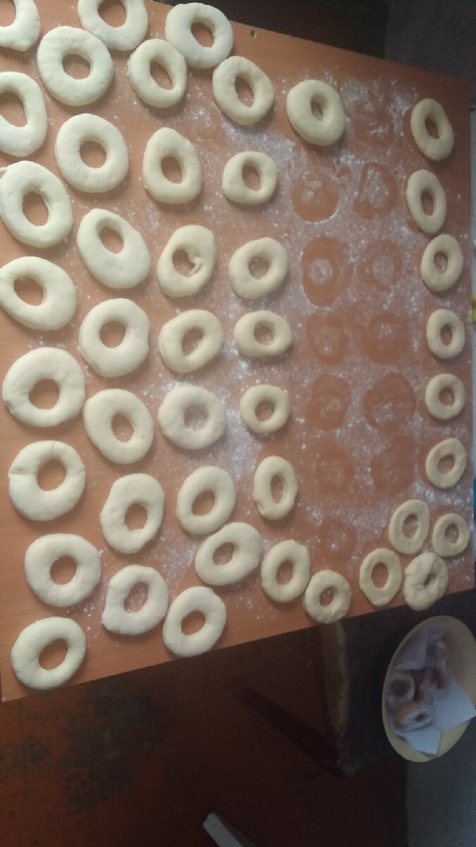 Чем накормить семь человек во время самоизоляции? Вопрос питания всегда стоял в нашей семье остро. Я сторонник классического правильного питания, но без фанатизма. Но за этот месяц уже мозги плывут... А если учесть, что младшему сыну всего две недели, любимый борщ, например, уже не вариант (( Выпечка каждый день... РЕЦЕПТ. Процесс. Сначала ставим опару. Не бойтесь, это получится даже в первый раз! В тёплой воде разводим дрожжи, немного сахара и добавляем просеянную муку, помешивая, пока тесто не станет, как сметана жидкая. Накрывает полотенцем и ждём около получаса, возможно, меньше, смотря, какие дрожжи. Затем всыпаем сахар, соль, муку добавляем постепенно, месим-месим, дрожжевое тесто любит ручки )) Ну вот, тесто перестало липнуть к рукам, снова оставляем его под полотенцем подняться. Первый раз обминаем, со второго начинаем творить пончики! Тесто раскатываем слоем около 5-10 мм. По рецепту вообще-то 3мм, но мне лень так долго возиться )) Вырезаем круг кружкой большого диаметра, вн
