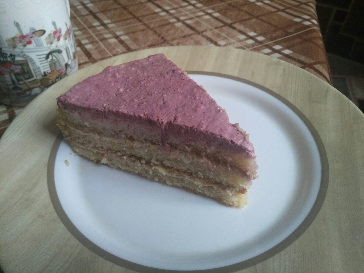 Может быть, такой рецепт есть уже. Я смешивала всё по наитию. Бисквитные коржи куплены в магазине. Всегда на всякий случай есть в доме. Творог (2 пачки по 180 г-9%) смешать с натуральный йогуртом (2 стаканчика по 125 г) и хорошо измельчить погружным блендером- в гладкую массу. Если хотите, можно в него добавить ванилин для аромата. Жирные сливки (20%) взбить с сахаром (6-8 столовых ложек), смешать с творожной массой. Сливок 300 мл. Наполнить торт кремом и отправить в холодильник, лучше- на ночь. Я сверху положила немного измельчённой вишни (было замороженной ложки две), просто смешала её с остатками крема. Крем получился исключительно приятным на вкус.