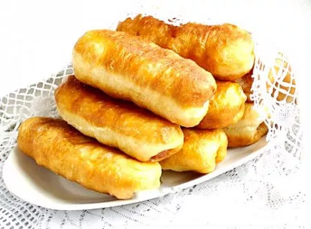 Шаг 1 В большой кастрюле соединяем теплое молоко и воду, добавляем сахар и дрожжи, оставляем на 10-15 минут. Затем добавляем растительное масло, соль, просеянную муку и замешиваем мягкое, чуть липнущее к рукам тесто. Накрываем полотенцем и ставим в теплое место на 2 часа, 1-2 раза обминаем. Шаг 2 Рабочую поверхность и руки хорошо смазываем растительным маслом, тесто разделяем на одинаковые шарики, размером с яйцо . Шаг 3 Каждый шарик хорошо обминаем или раскатываем и кладем сосиску. Шаг 4 Соединяем края теста, формируя продолговатый пирожок. Шаг 5 Выкладываем в разогретую с большим количеством масла сковороду . Шаг 6 Жарим с двух сторон до золотистого цвета.Приятного аппетита! умно вкус