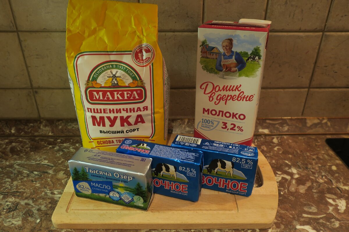 Торт Наполеон. Нам понадобится: Для коржей: Молоко – 1 стакан, Сливочное масло – 400 грамм, Мука – 5 стаканов. Для крема: Молоко – 2 стакана, Мука – 3 ст. ложки, Сливочное масло – 250 грамм, Яйца (желтки) – 3 штуки, Сахар – 1 стакан + 3 ст. ложки. На доску или в емкость просеиваем 5 стаканов муки. Добавляем сливочное масло комнатной температуры, нарезанное кусочками. Перетираем руками муку с маслом. Постепенно вливаем 1 стакан молока. Замешиваем тесто. Долго не месим, чтобы тесто при раскатывании не затягивалось. Делим тесто примерно на 14 кусочков. Каждый кусочек тонко раскатываем. Крышкой удобно отмерить нужный размер. Перекладываем корж на сухой противень. Накалываем вилкой в нескольких местах. Обрезки тоже выпекаем, из них будем делать обсыпку. Выпекаем 5-7 минут при температуре 200 градусов. Выпекаем все 14 коржей и обрезки. Делаем крем: К 3 желткам добавляем 3 столовые ложки сахара и 3 столовые ложки муки. Перемешиваем нашу кремовую массу. Берем 2 стакана молока. Добавляем нем