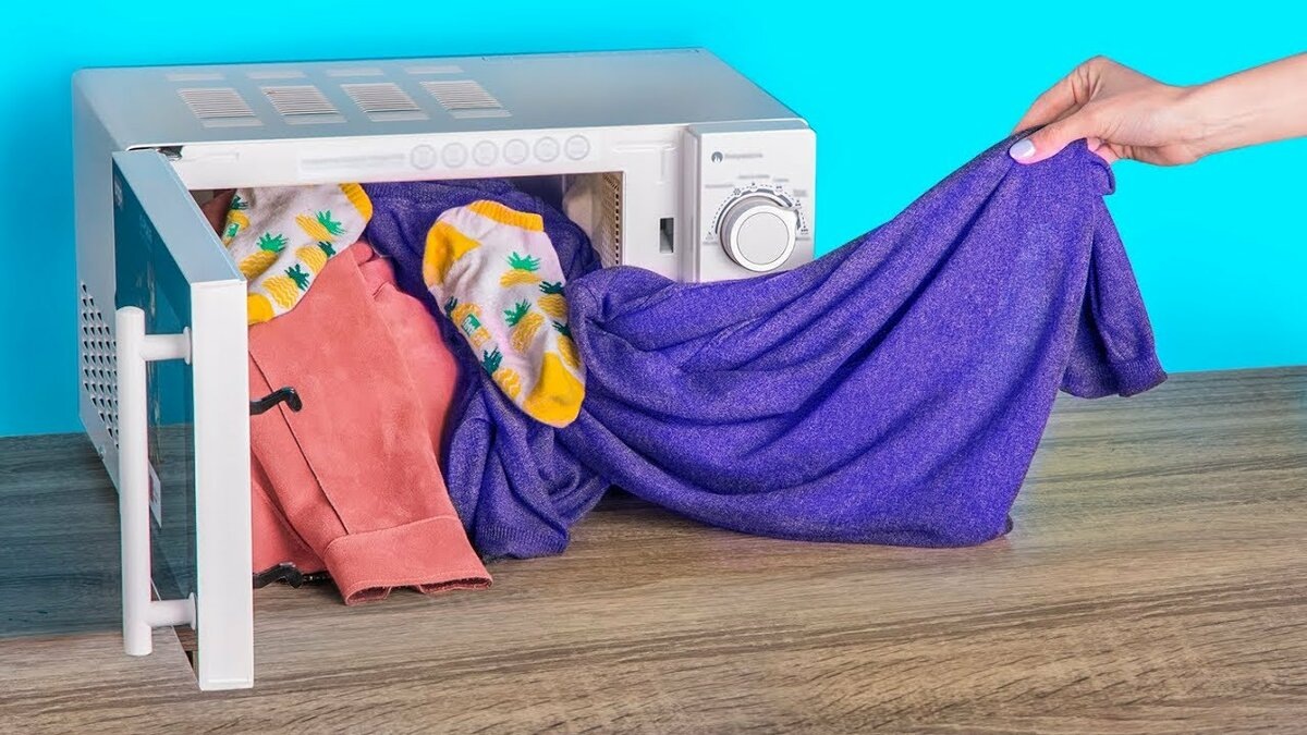 - Если у вас нет стиральной машинки, а стирать мелкие вещи вручную лень, то воспользуйтесь микроволновкой. Для этого понадобится моющее средство и пара кружек воды. Замочите ваши вещи и поместите в микроволновку на 10 минут. Потом останется только прополоскать вещи под водой.