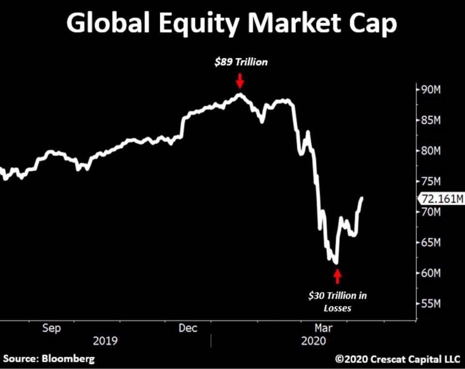 Мировой рынок акций потерял около $20 триллионов. Реальный ущерб, включая все остальные активы, приближается к $50 триллионам или уже перевалил. Мизерные $6 триллионов, розданные правительствами, ни в каком формате не исправят это! Есть о чем поразмыслить глобально. Если хотите получать больше информации из мира инвестиций, вступайте в мой Телеграмм-канал : ВСТУПИТЬ В КАНАЛ