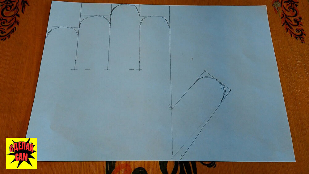 Сидим дома. Но иногда надо выйти, например в магазин. В этой статье я расскажу как самому сделать одноразовые защитные перчатки. Для этого понадобится следующее: лист бумаги А4; карандаш; линейка; полиэтиленовый пакет; фломастер; паяльник. Для того, что бы уместить шаблон на листе А4, надо использовать альбомную ориентацию. На схеме ниже даны размеры, они справочные, скорее на средний размер руки, и можно конечно делать по своим меркам. Когда шаблон готов, кладём на него полиэтиленовый пакет подходящего размера. В данном случае, я использовал пакет 24х38 см. Из-за размеров листа, шаблон несколько коротковат, поэтому отступаем примерно 5 см. от края пакета до края листа бумаги. Теперь обводим линии шаблона фломастером, таким образом переносим рисунок выкройки на пакет. Кладём пакет на подходящую поверхность, которая не испортится под воздействием нагретого паяльника. Я использовал старую кухонную табуретку (можно так же использовать кухонный стол, с по
