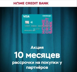 Сегодня нас радует банк "Хоум Кредит". Кто давно планировал какую-то крупную покупку must have. Всем клиентам оформившим карту рассрочки "Свобода" доступна рассрочка 10 месяцев на всё во всех магазинах-партнерах. В пролёте только Эльдорадо, там будет 3 месяца. Данные условия действительны первые 14 дней после получения карты. Выпуск и обслуживание карты бесплатное, а бесплатное и выгодное надо брать. Важно: к карте могут молча подключить платные услуги, проверяем и отключаем звонком на горячую линию. Список магазинов партнёров очень солидный, можете посмотреть у них на сайте. Заказываем "Свободу" на официальном сайте .