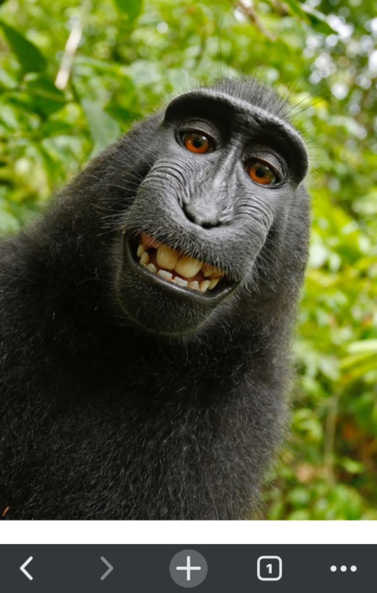 Знаете ли вы, что если ваш домашний любимец напишет картину, сочинит мелодию или даже просто щелкнет себя на камеру, то созданное им произведение по умолчанию становится общественным достоянием, и вы не будете иметь на него авторских прав? Британский фотограф Дэвид Слейтер, оставивший в 2014 году фотооборудование в вольере хохлатого павиана, в зоопарке Тангкоко в Индонезии, не имел понятия ни об этой правовой норме, ни о том, что обитатель вольера воспользуется его камерой для съемки селфи. Судебный процесс, продолжавшийся вплоть до 2017, не признал прав Слейтера на это произведение, так что опубликованное здесь селфи является общественным достоянием и его можно спокойно тиражировать. С августа 2014 года однозначно указывается, что созданные не человеком произведения не могут быть защищены авторским правом.
