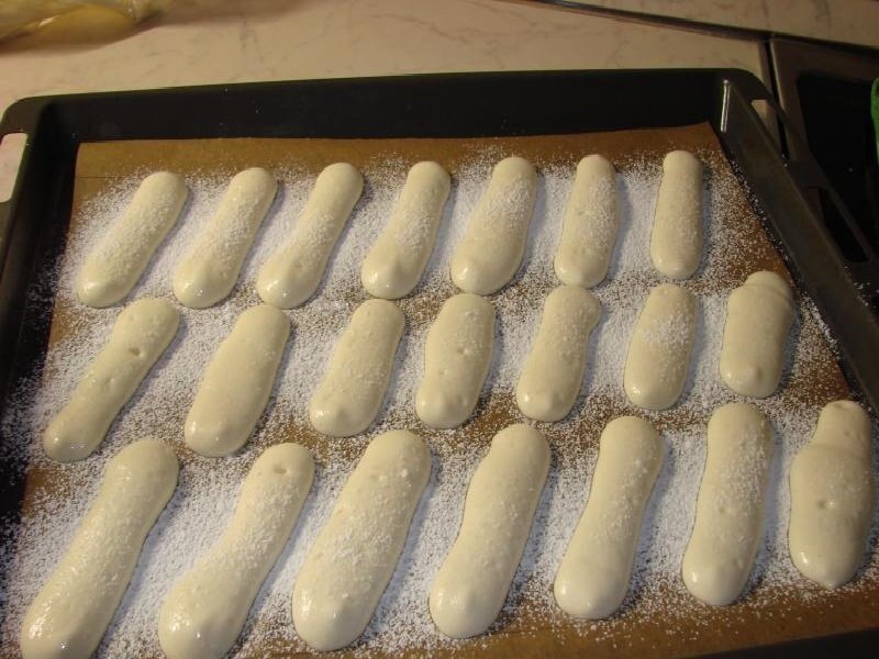 Печенье представляет собой легкий хрустящий бисквит.Оно прекрасно подходит для домашнего чаепития или служит основой для изысканного десерта тирамису. Для приготовления савоярди нужны 2 желтка и 3 белка куриных яиц, 60 граммов просеянной пшеничной муки, 60 граммов сахара и 30 граммов сахарной пудры. Готовится тесто очень легко.Сначала взбиваем желтки с половиной сахара до белой однородной массы.Затем добавляем половину муки и перемешиваем. Белки взбить с другой половиной сахара до устойчивых пиков.Когда взбиваете белки, то сахар добавляйте понемногу. Теперь в желтковую массу постепенно вмешать оставшуюся муку и взбитые белки.Должна получится однородная масса.Переложите тесто в кондитерский мешок и отсадите на пекарскую бумагу на противень в виде ровных палочек длиной 6-8 см. Выпекать при температуре 200 градусов 10-15 минут.Достать из духовки и посыпать сахарной пудрой.Можно посыпать печенье и перед выпечкой.Тогда сверху сформируется слой хрустящей карамели. Подавать к чаю или кофе.