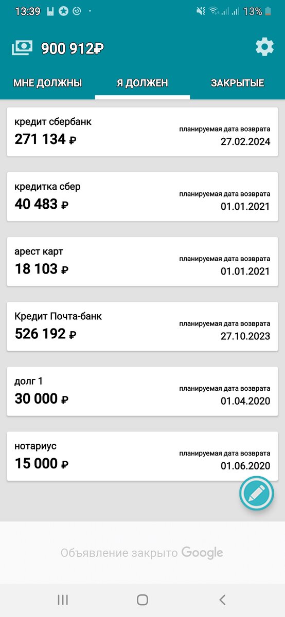 У меня уже навязчивая идея, хочу чтоб долгов было меньше 900 тысяч, какая-то заколдлваная эта цифра, я вокруг нее топчусь третий месяц и никак переступить не могу.