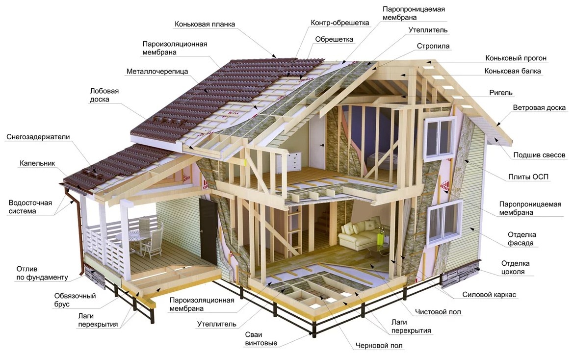 Из чего состоит каркасный дом?