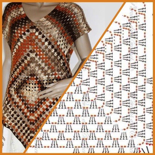 Еще одна туника с длинным рукавом, которая мне понравилась, но она не их квадратов, а немного более затейливых геометрических фигур: