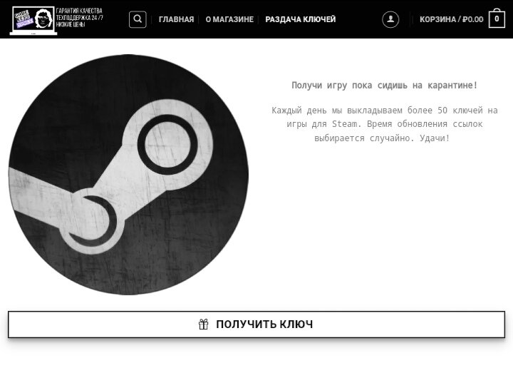 Каждый день выкладывают 50+ ключей для Steam. Всё, что нужно сделать - клик по ссылке и нажать "Получить ключ" (см скрин).