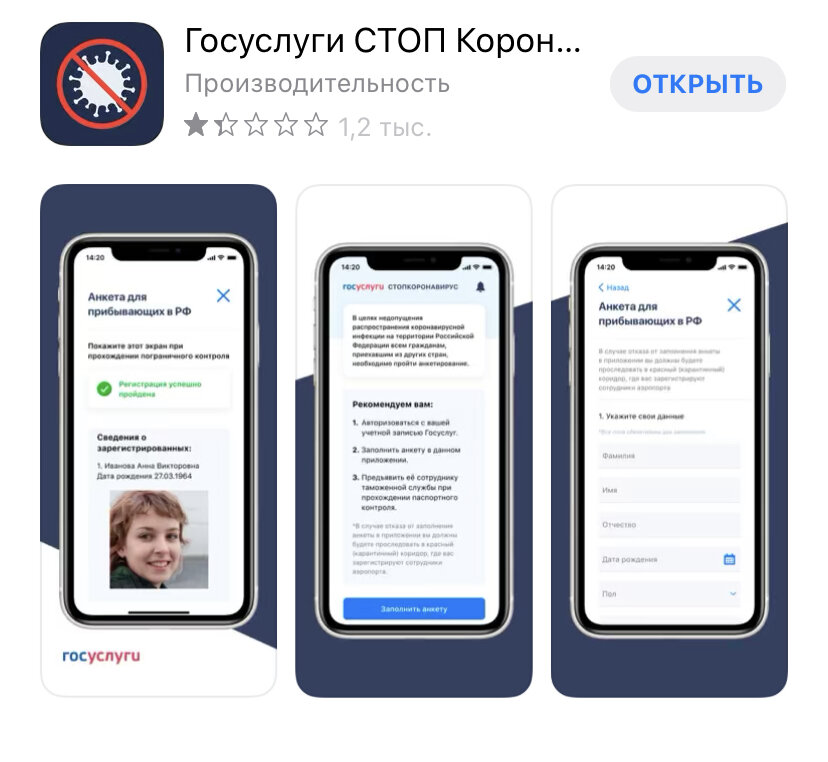 Минкомсвязь создала мобильное приложение, в котором можно оформить себе пропуск для перемещения по городу во время карантина. Найти его можно в AppStore и Googleplay как /Госуслуги Стоп Коронавирус/. Решил скачать и посмотреть что это за зверь такой, ведь раньше с таким никогда не сталкивался. После установки, всем необходимо авторизироваться через портал Госуслуги и пройти анкетирование - выбрать один из вариантов: Дальше, выбираете документ удостоверяющий личность, проверяете данные, делаете свое фото, фото документа, фото себя с документом. Ознакамливаетесь с требованиями к соблюдению мер по самоизоляции, с ответственностью за нарушения и отправляете анкету. После на экране появляется кнопка Зарегестрировать выход из дома и вы выбираете причину. (на рисунке ниже) И после выбора появляется заветный пропуск, вот как он выглядит Указывается время оформления, ваше фото, причина и QR код, который могут запросить сотрудники полиции или росгвардии. Обновлено: Оказалось, что здесь нельзя
