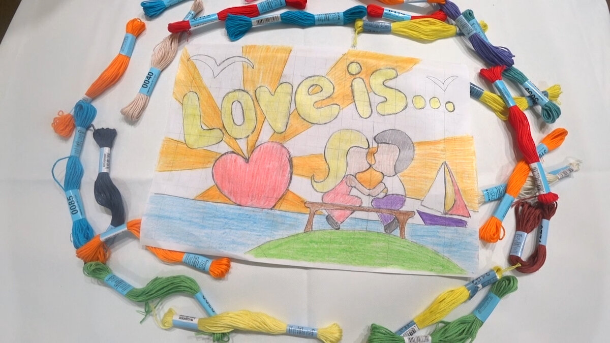 Картина в технике изонить по мотивам жвачки LOVE IS...
