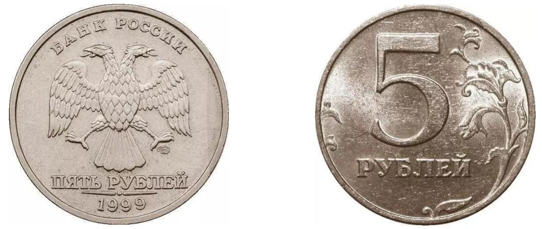 Монеты номиналом 5 копеек 1999 года выпуска – на сегодняшний день известно о существовании 3–5 таких. Один экземпляр был продан на аукционе в 2013 году за 300 000 руб.