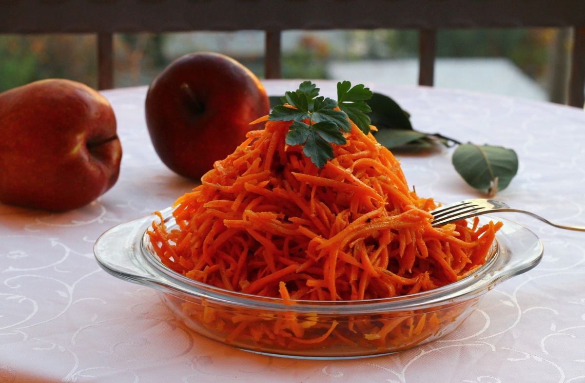 Еще один день на карантине подошел к концу, а это значит, что пора делится с вами новым рецептиком. Не знаю как вы, а я скоро сойду с ума от скуки... Яркая, сочная, ароматная и в меру острая, всё это - она морковь по-корейски. Вот вроде бы и ничего особенного, но невероятно вкусно! Нам понадобится: морковь 1 кг. чеснок 5 зубчиков уксус 9% 3 ст. ложки масло подсолнечное 4 ст. ложки приправа для корейской моркови 3-4 ст. ложки Приготовление: Для начала очистим морковь и натрем ее на специальной терке соломкой. Чеснок очищаем и мелко режем. На разогретую сковороду наливаем масло и прогреваем, кладем чеснок и обжариваем две минуты. Натертую морковь кладем в глубокую миску, туда же отправляем уксус, приправу и наше масло с чесночком. Всё тщательно перемешиваем. Отправляем на несколько часов в холодильник, чтобы морковь стала сочнее и вкуснее. Приправу для моркови по-корейски можно использовать самую обычную магазинную, но если нет, тогда смешайте специи которые я записала ниже и дейст