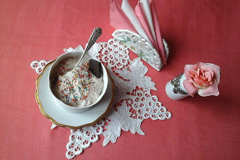 Примерное КБЖУ на 100 грамм блюда: Б - 14,5 г; Ж - 8 г; У - 6,2 г; 157 ккал. Ингредиенты: - сахарная пудра - 10 г; - молотые кофейные зерна - 1/2 часть столовой ложки; - вода - 50 мл; - ваниль по вкусу; - творог от 9% - 200 г. Способ приготовления: Кофейная вытяжка Приготовление вытяжки — необходимо сварить крепкий кофе, накрыть крышкой и настоять (30 мин), затем процедить. Для получения столовой ложки вытяжки следует взять половину ложки размолотых зерен. Готовим творожный пудинг Поместить творог, пудру, вытяжку в блендер, перемешать. По желанию добавить ваниль. Охлажденную массу разложить по креманкам. Подача Подаётся в прохладном виде в качестве десерта. Для украшения используется мороженое или готовые взбитые сливки. Источник: Творожный пудинг
